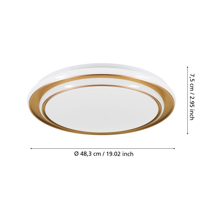 Ukupni lumeni: 4.800 Total Kelvin: 2700 / 4000 / 6500 Šifra proizvoda: 902045 Materijal kućišta: čelik Boja kućišta: zlatne boje Materijal stakla /abažura: plastika Boja stakla / abažura: beo Stepen zaštite: IP20 Sa sijalicama 1: Da Sijalično grlo 1: LED Klasa energetske efikasnosti: E Funkcije: 3-step CCT -